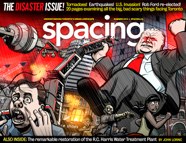My objective was simply to pick up a copy of the Disaster issue of Spacing Magazine. Spacing is a pretty good magazine, and well worth the $5 price, but this issue is fabulous. I arrived early, had a beer, and left, because I didn't know any of these people and wasn't there to schmooze. I don't schmooze too well.